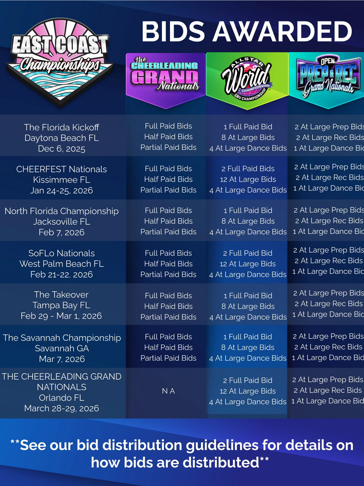 - FULL PAID, HALF PAID & PARTIAL PAID BIDS TO THE CHEERLEADING GRAND NATIONALS